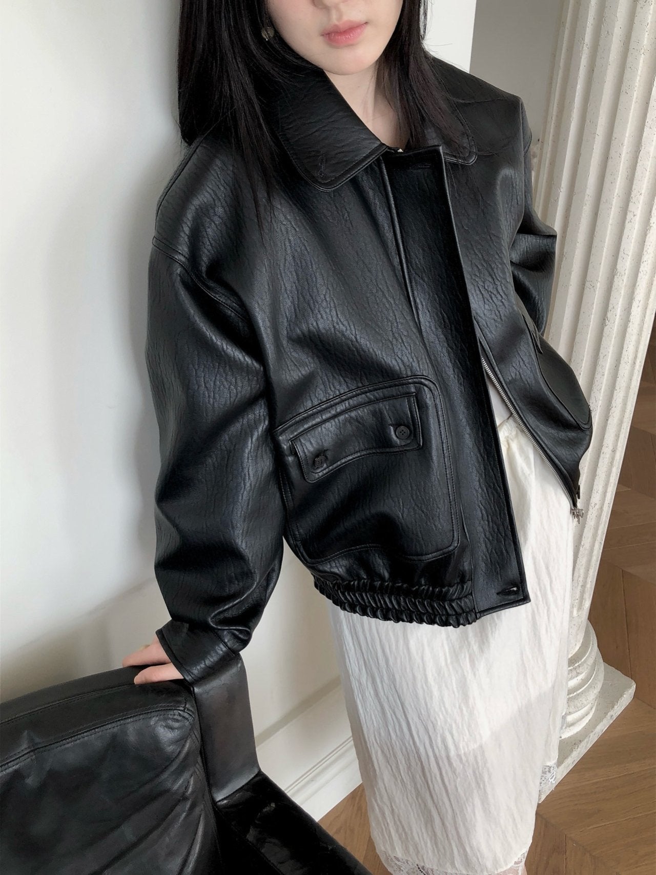 Button Leather Bomber