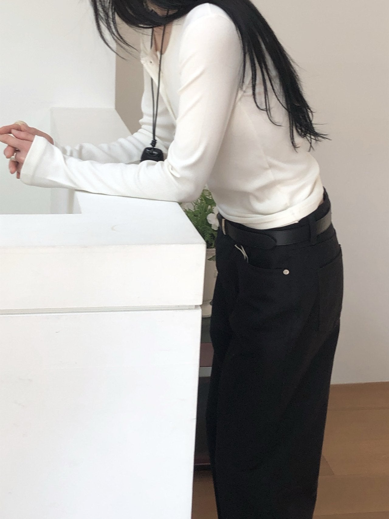 Button Ribbed T Shirt