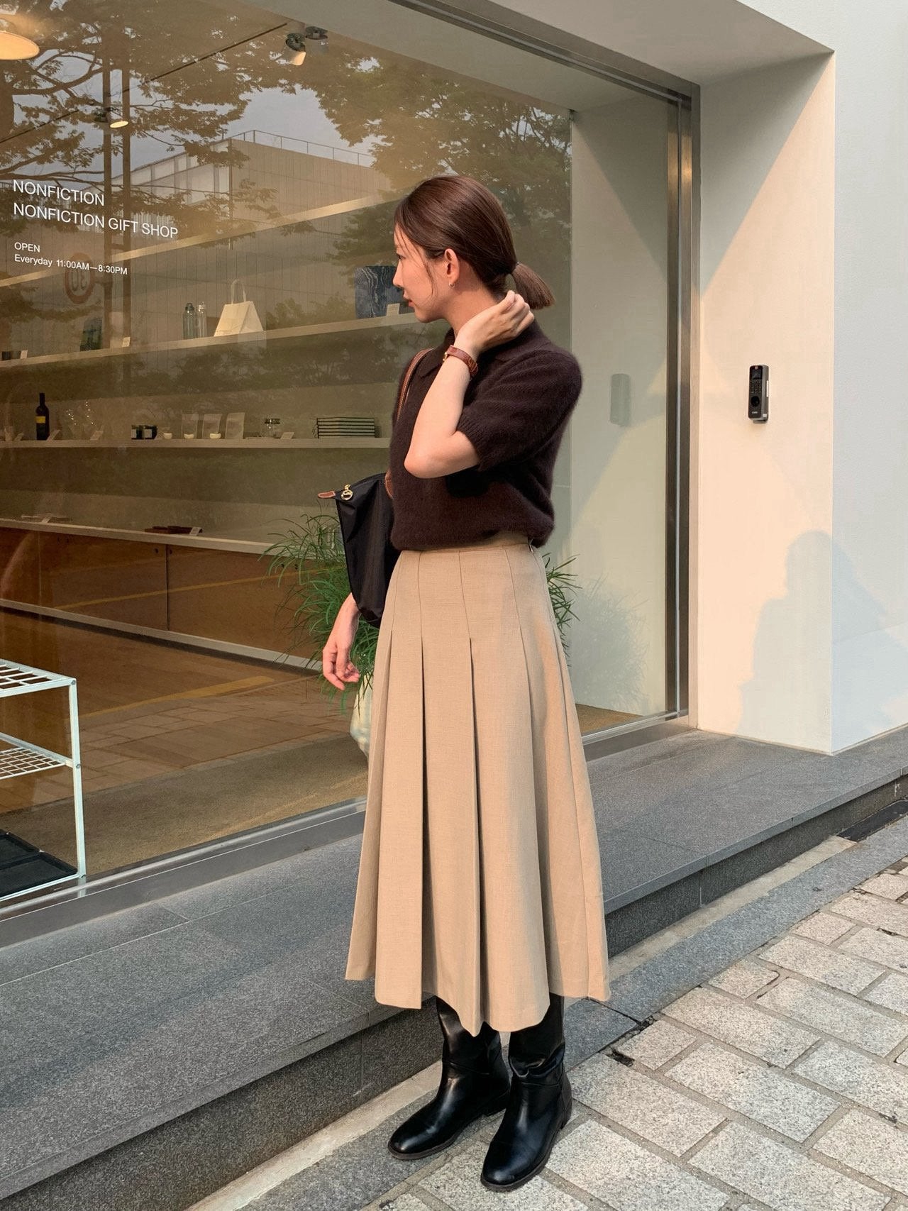 Wool Pleats Midi Skirt